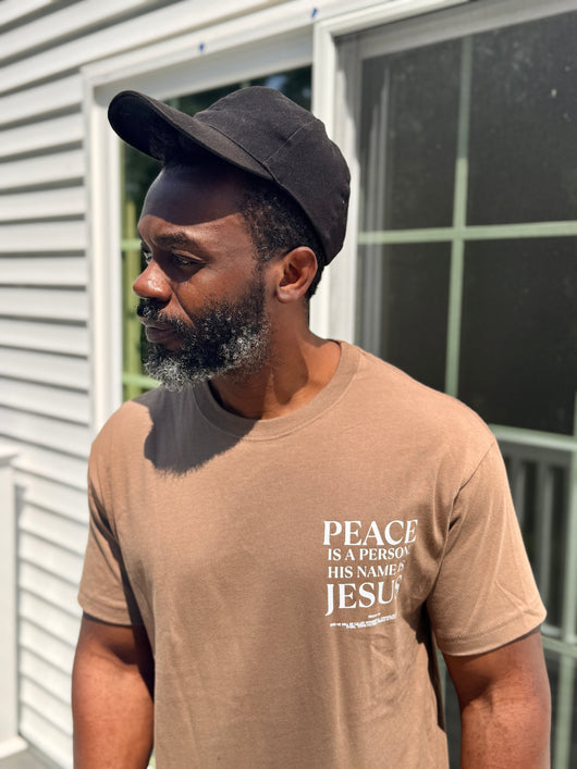 Available in Midnight Prayer (black), Pure Dawn (white), and Vintage Brown, each two-sided design boldly proclaims: Peace Is a Person, and His name is Jesus. Perfect for everyday wear, quiet reflection, or gifting hope to someone who needs the reminder.